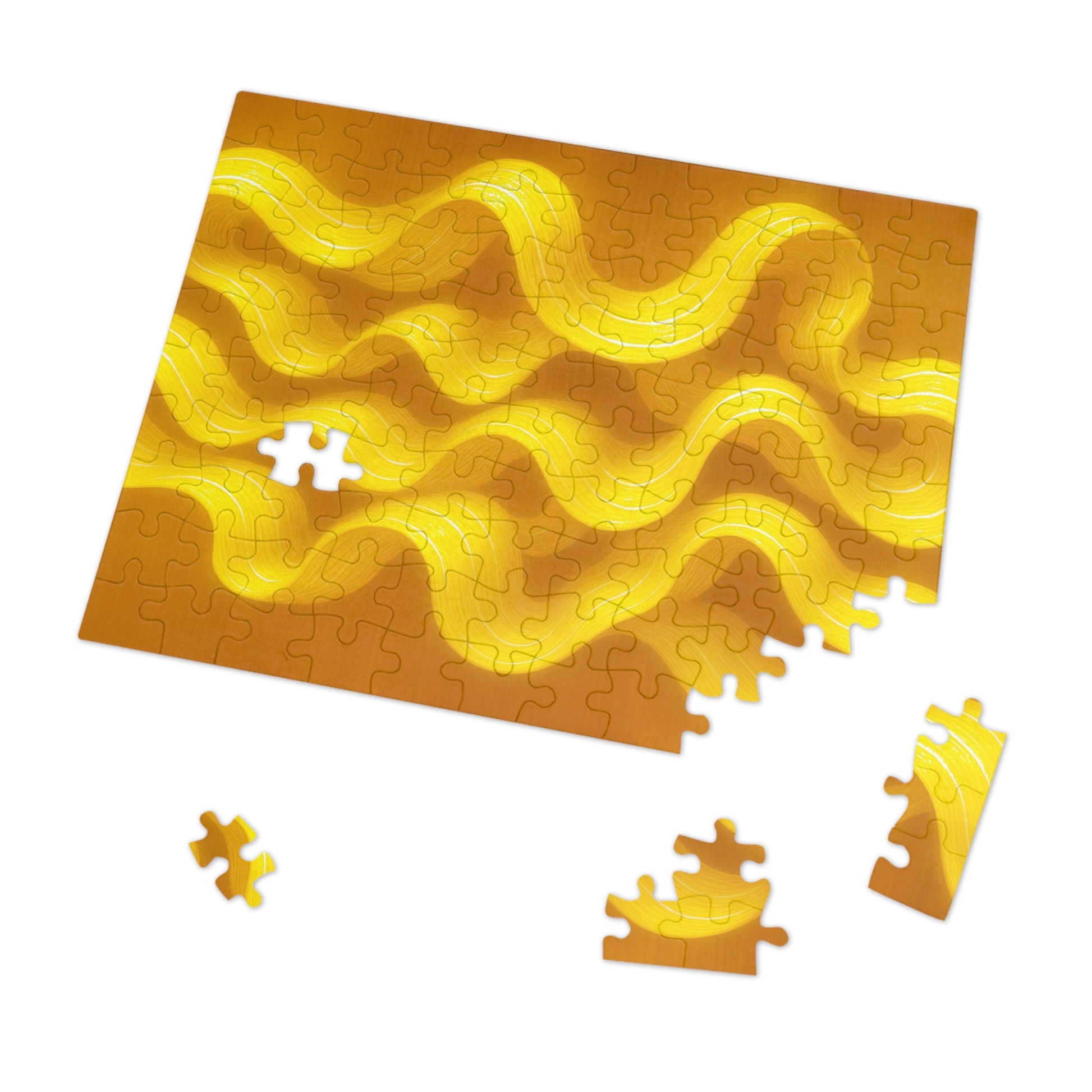 Lemon and sunflower highs meet warm ochre lows, with hair-fine white threads that glint along each curve—luxurious without clutter, luminous without glare.
