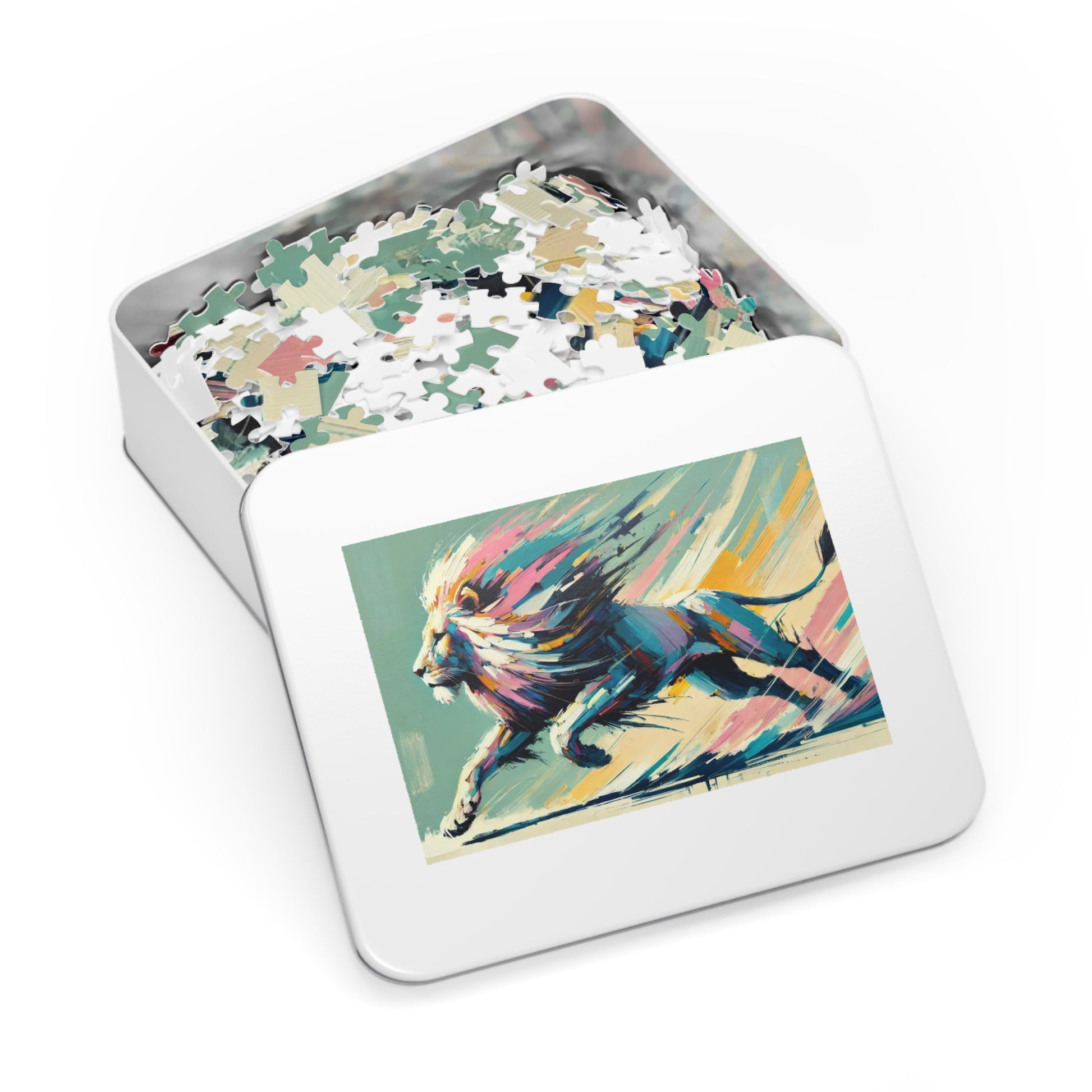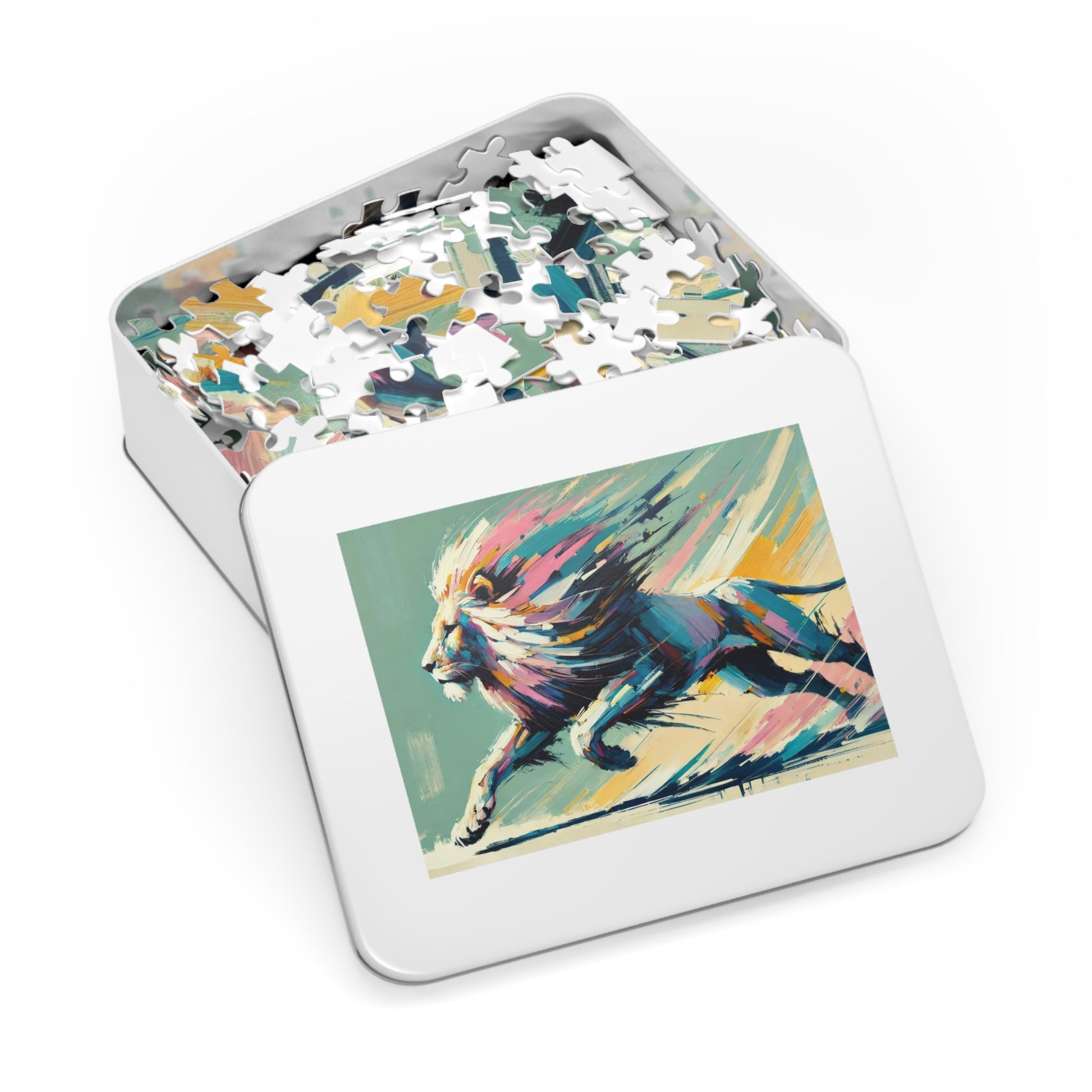 Witness raw power frozen in motion. Majestic Momentum: The Racing Lion is a striking tribute to grace and force, rendered in a vibrant storm of color and energy. This puzzle captures the split-second intensity of a lion at full speed—its mane whipped by motion, its body a blur of purpose and might.
