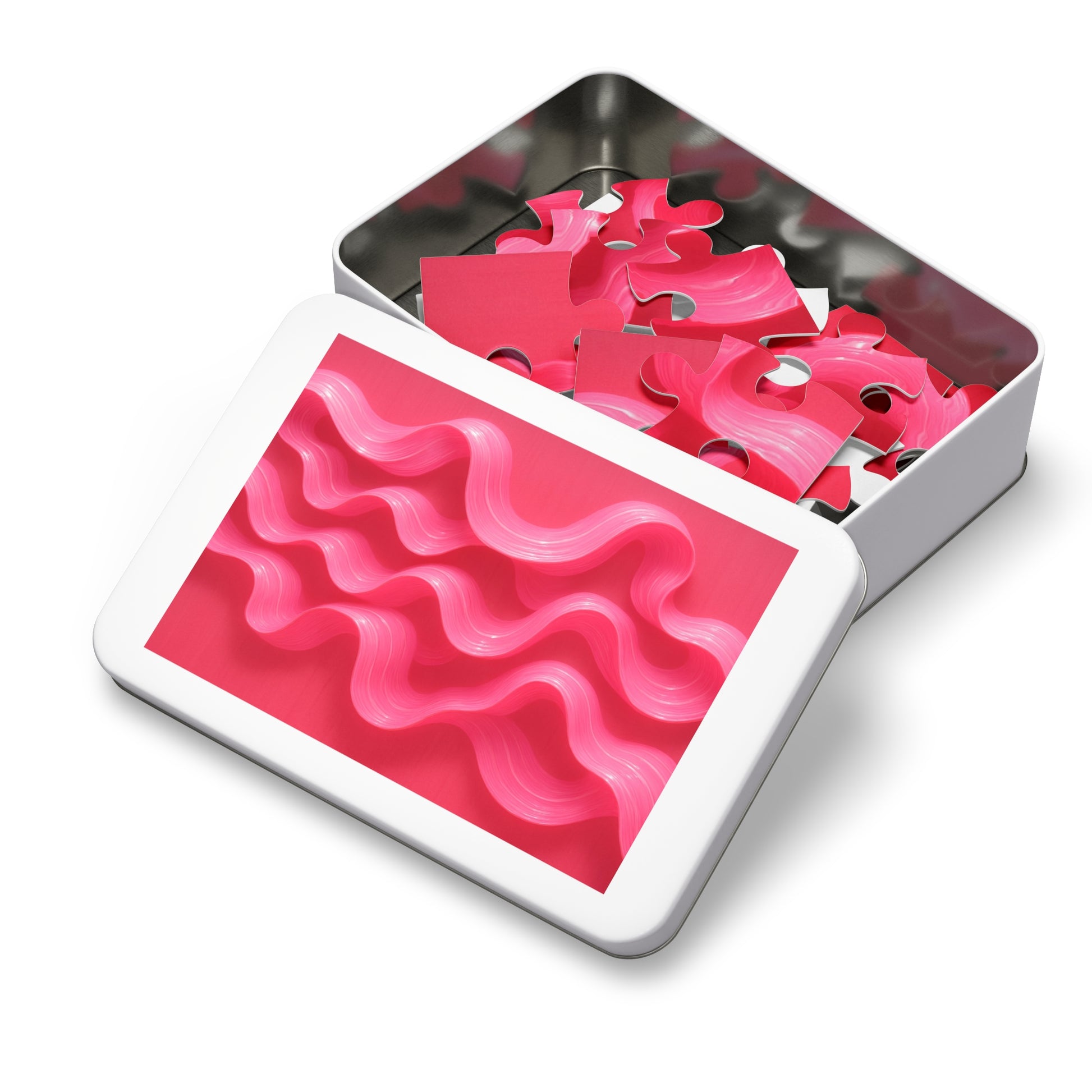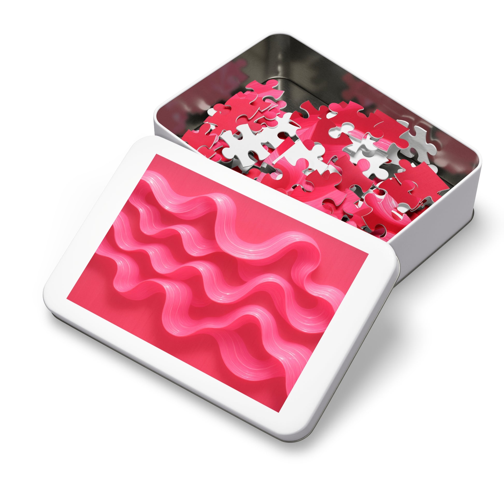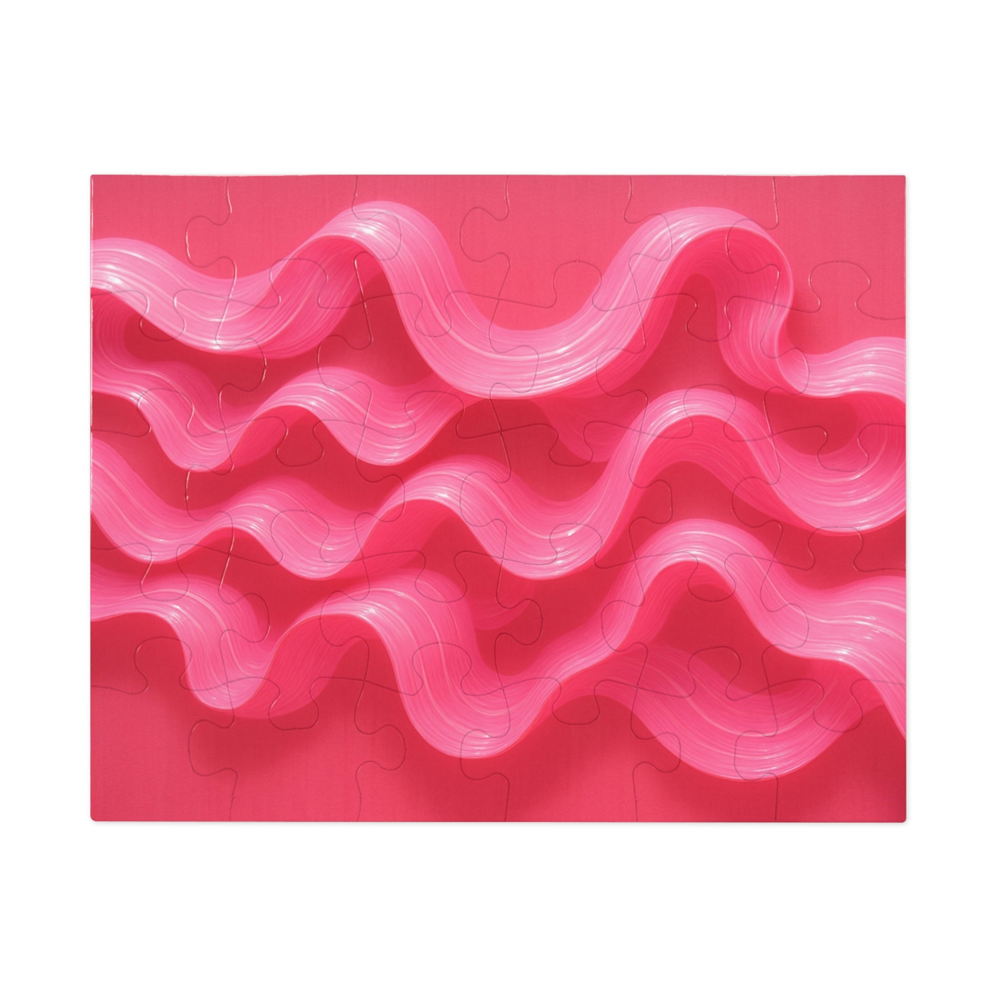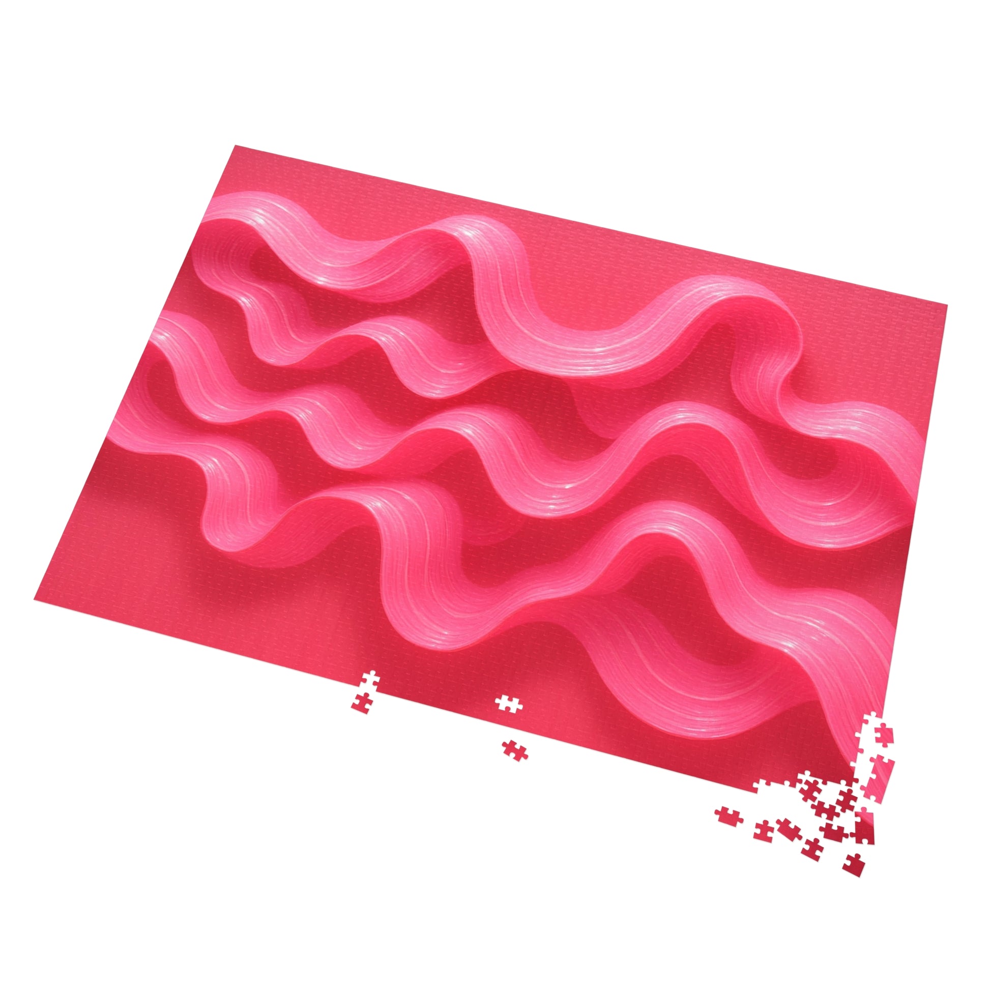 Radiant, candy-gloss ribbons sweep from edge to edge, weaving gentle sine-waves across a warm rose ground. Each stroke carries silky inner lines and glassy highlights, creating the sensation of liquid color in motion—sweet, modern, and irresistibly elegant.