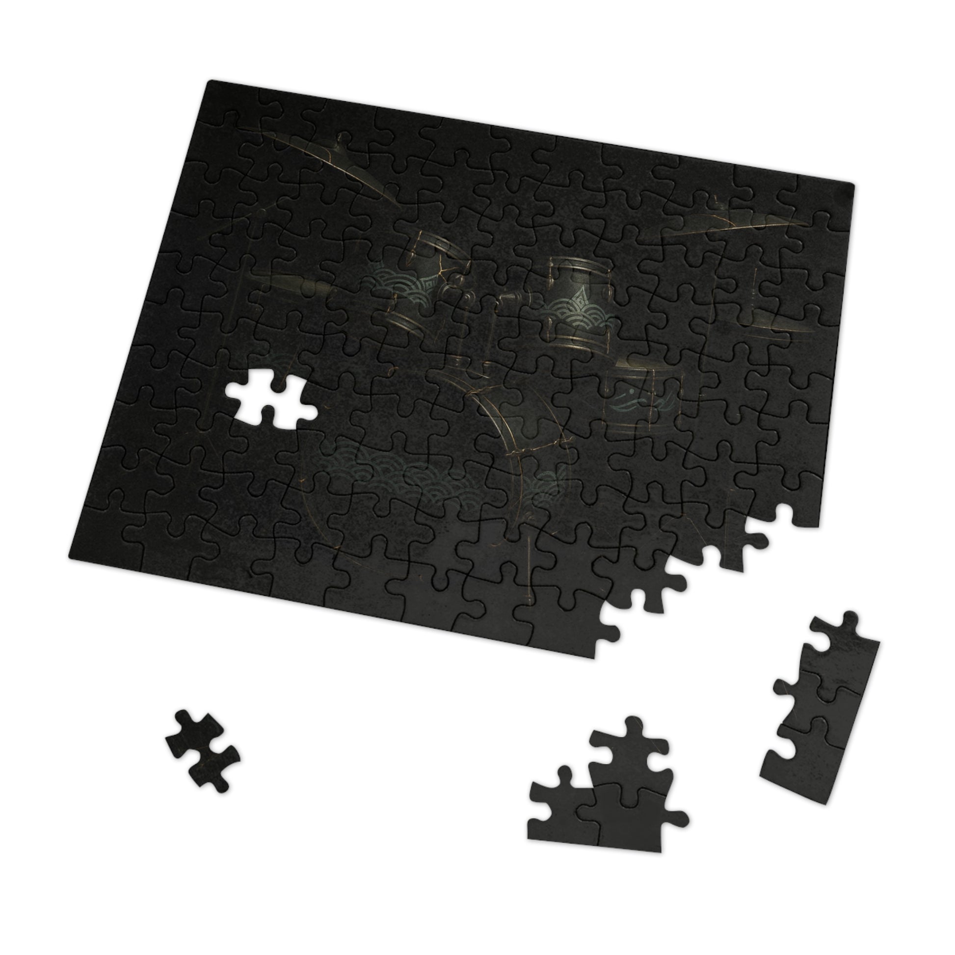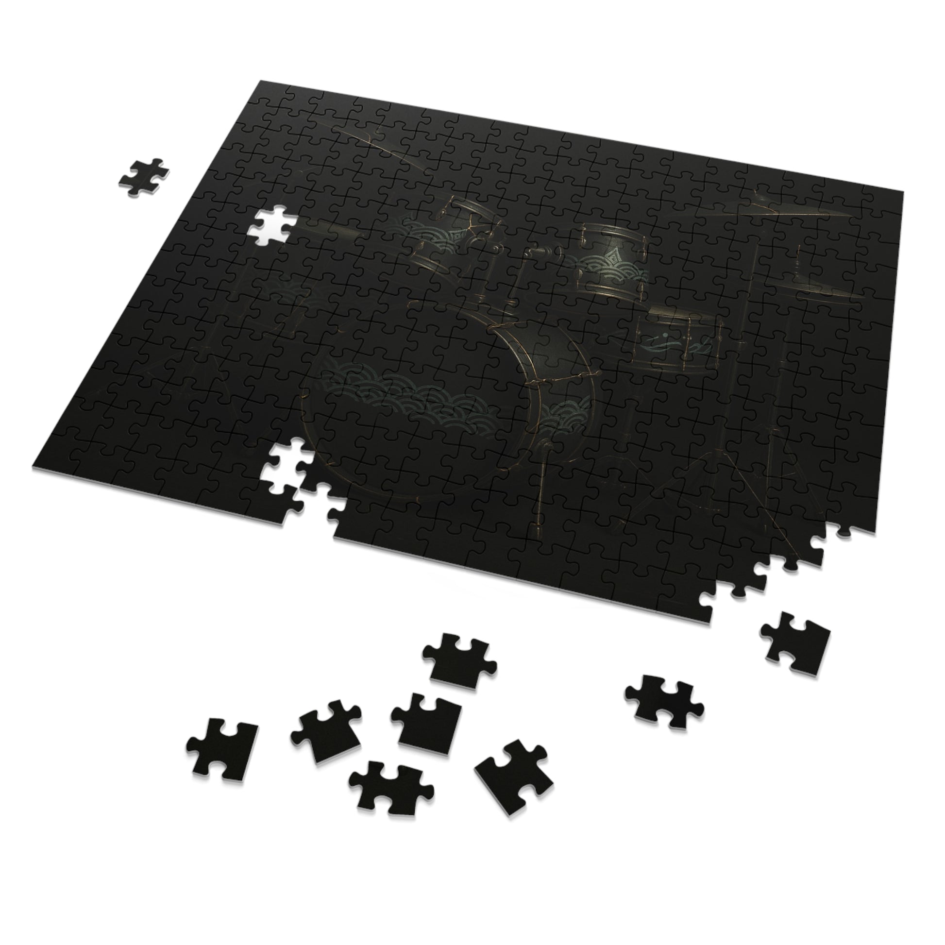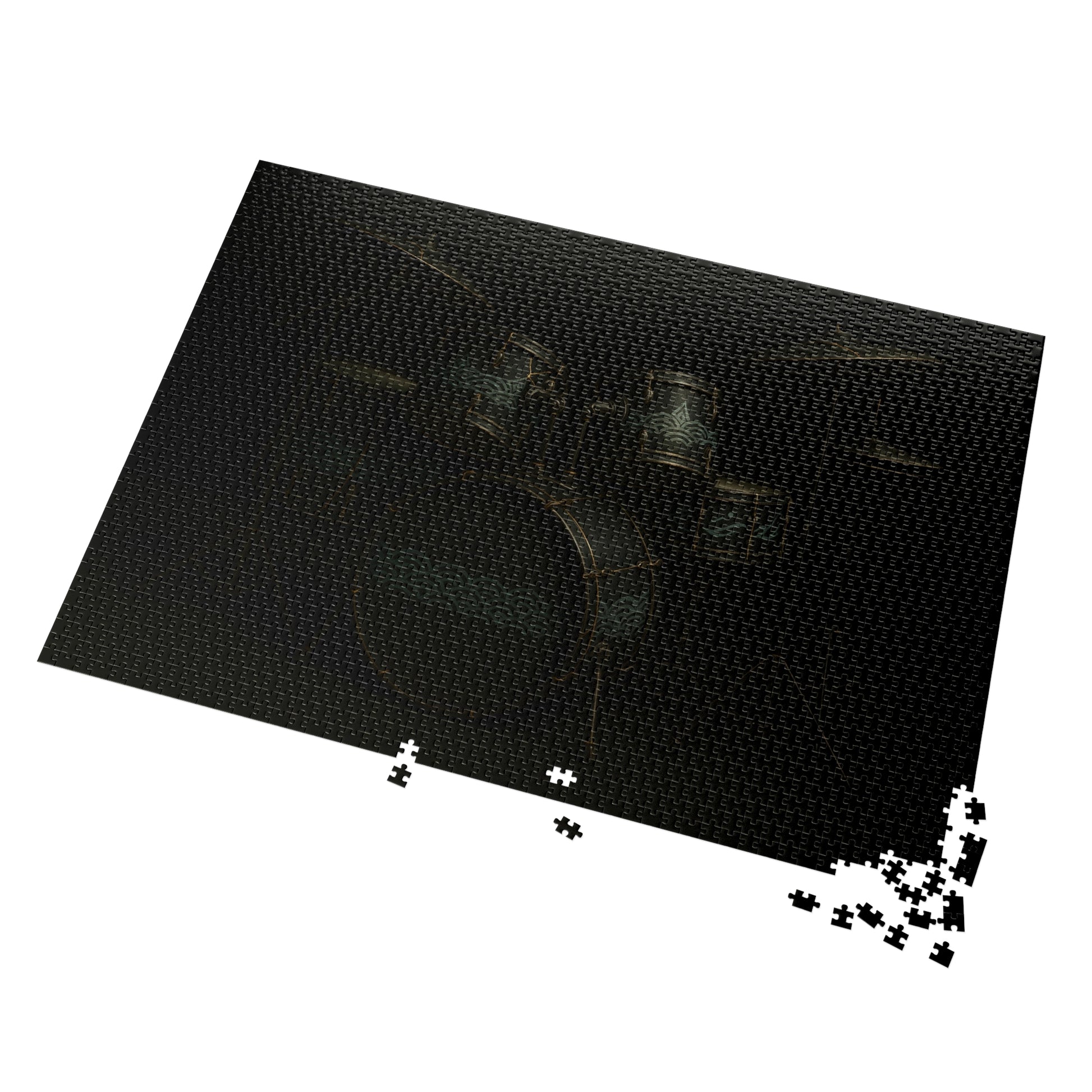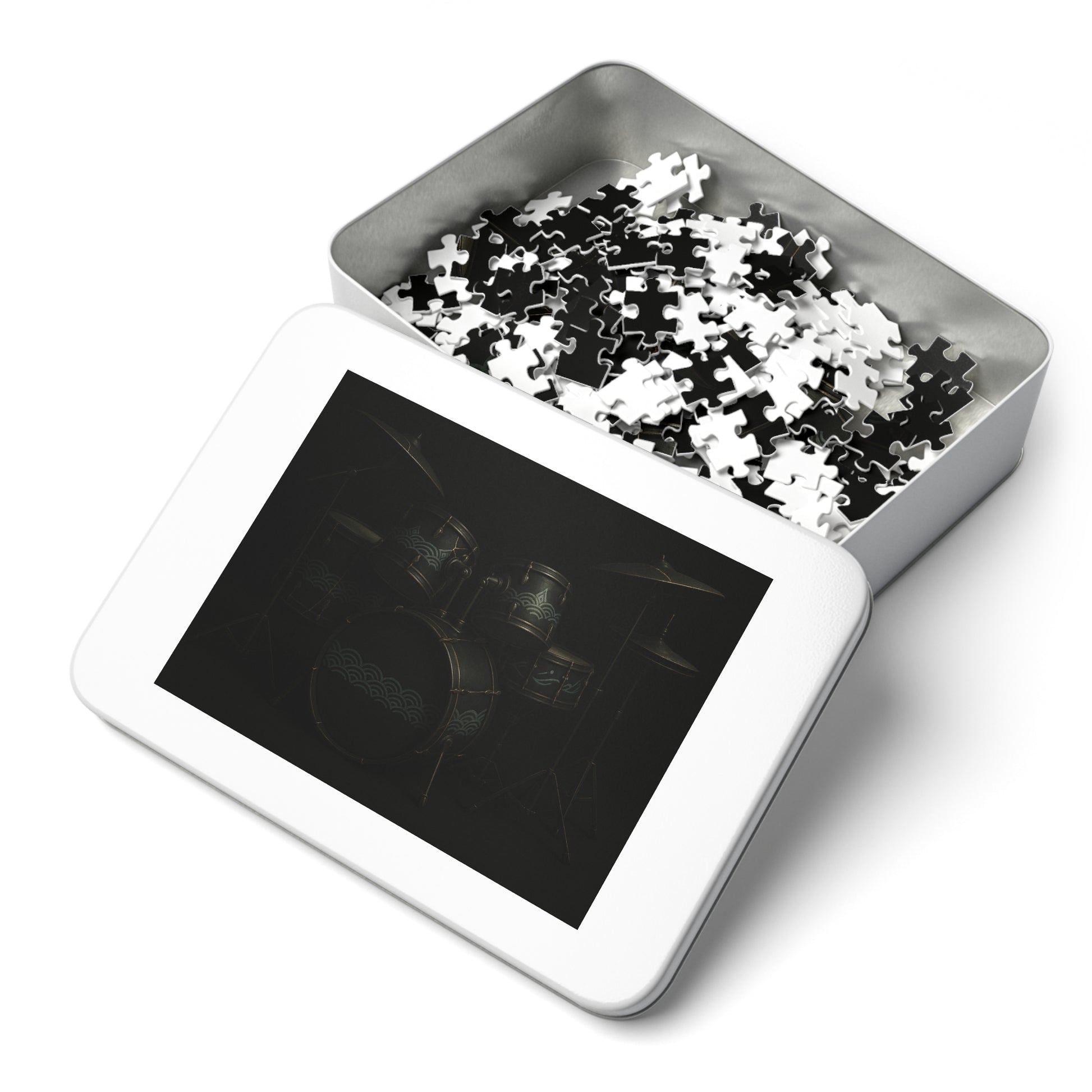 Clear assembly zones—cymbals, toms, snare, bass shell, and negative space—make sorting intuitive. Repeating seigaiha arcs and kintsugi lines provide steady visual beats.